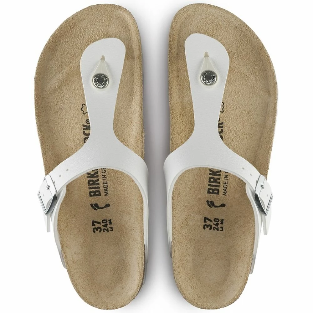The modern thong sandal from Birkenstock. The Gizeh is an addictive classic with signature support and a refined; minimalist style.• Birko-Flor – durable; synthetic upper material with leather-like finish and soft backing• Cork footbed that features pronounced arch support; a deep heel cup; and roomy toe box; lined with suede• Lightweight EVA sole for cushioning and shock absorption• Made in Germany