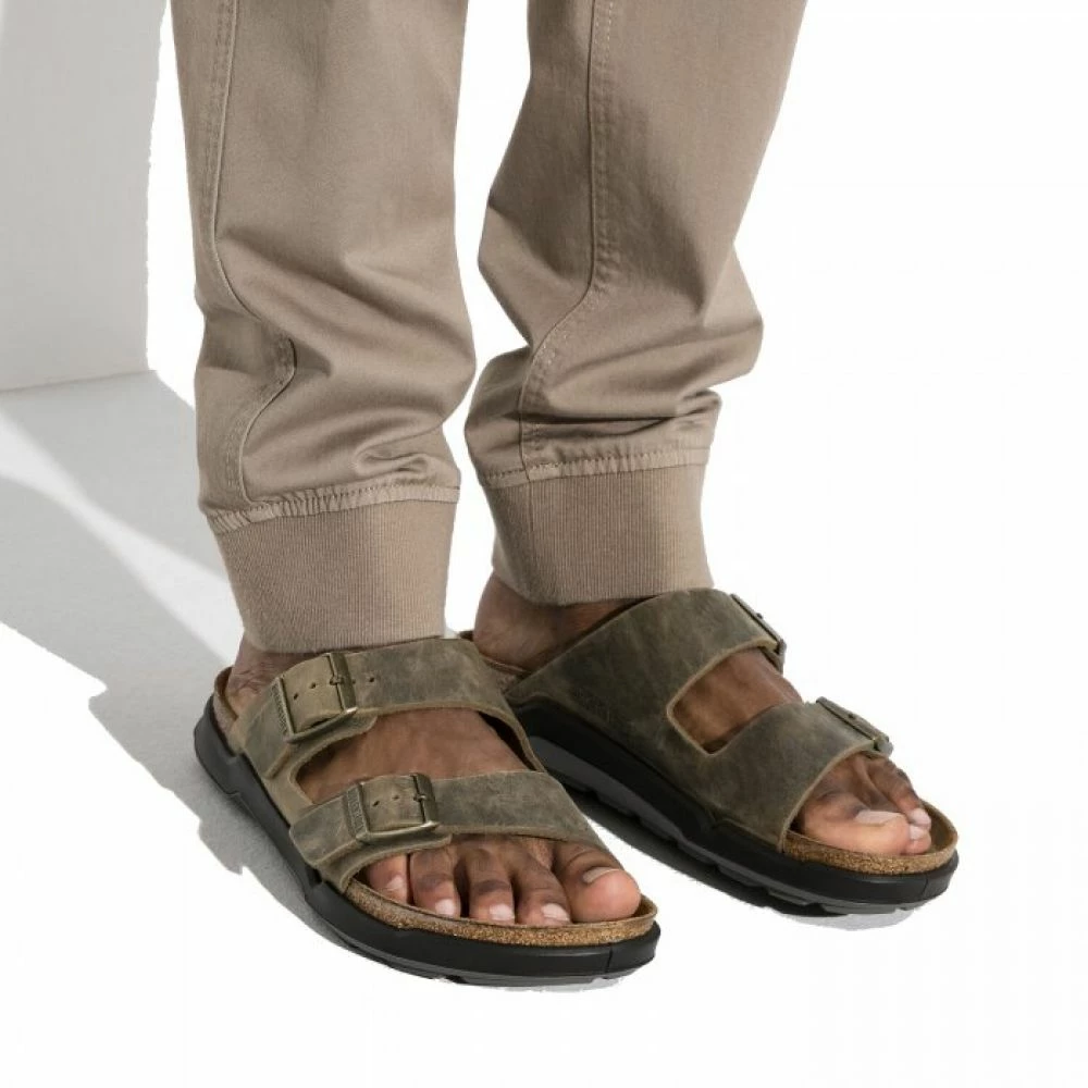 Birkenstock Men’s Arizona Cross Town Oiled Leather In Faded Khaki