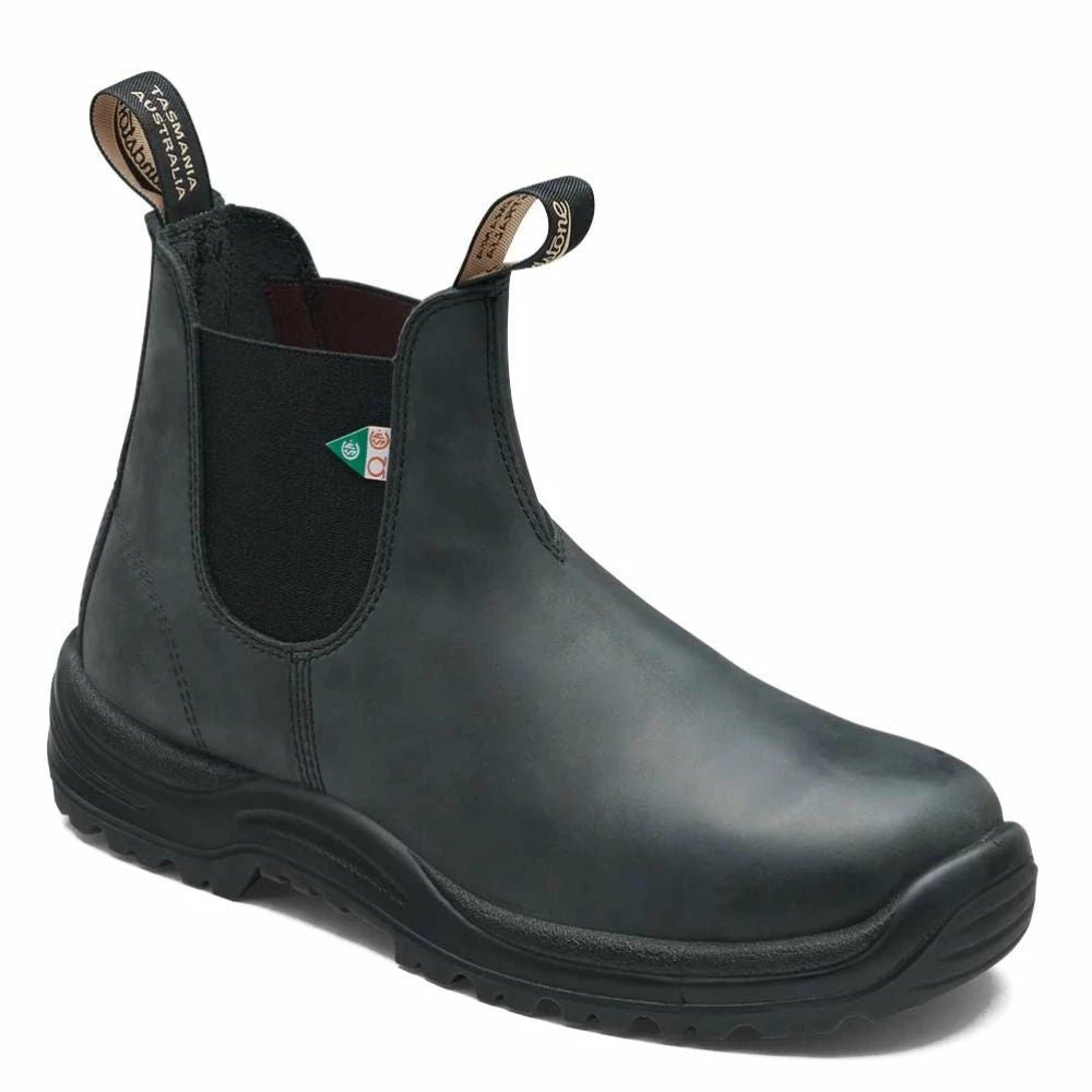 This work boot checks all the safety boxes so you can focus on the job at hand. The Blundstone Work & Safety Boot 181 in Waxy Rustic Black has protective steel toe safety and dry all-day comfort, even on concrete. Flexible, comfortable and pull-on, kick-off easy to keep mud and debris off car mats, indoor carpets and new floors. Lightweight and durable with a sole resistant to electrical, chemical and acid dangers. CSA approved.