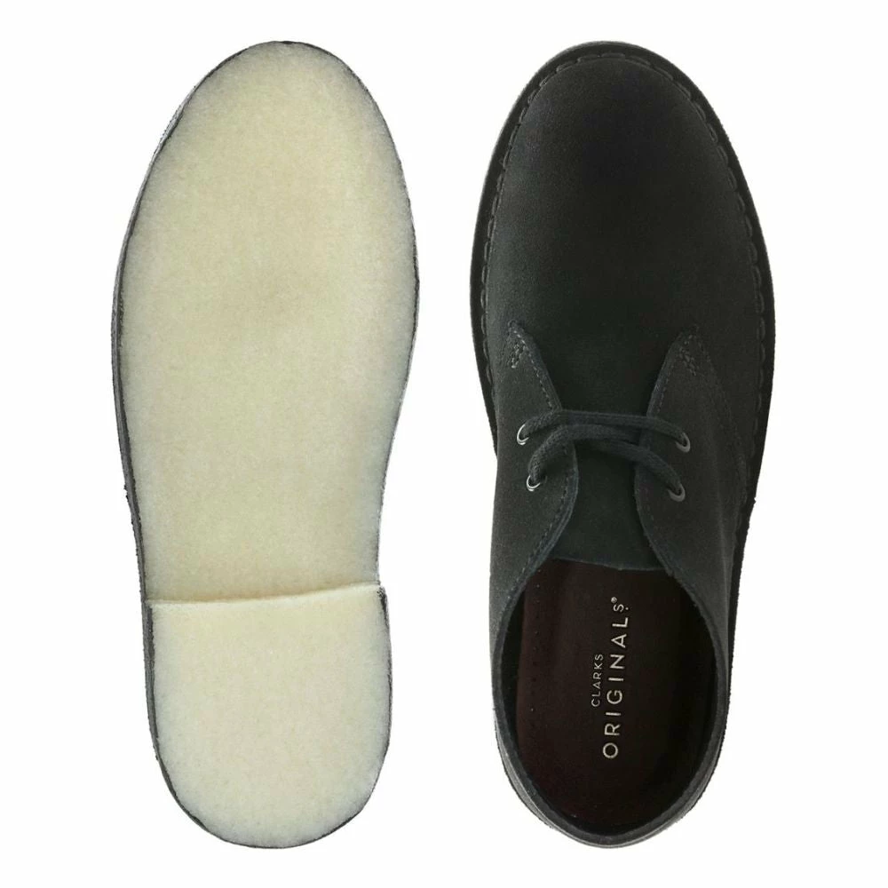 Cultural cachet and design DNA: no shoe is quite like the Clarks Originals Desert Boot. Every design detail today remains true to that first pioneering pair – here, the boot’s crafted, clean lines are enhanced with premium black suede, finished with an unfussy lace fastening. The authentic, sustainably sourced crepe sole completes this distinctive silhouette. Instantly recognizable, forever iconic. A true original.