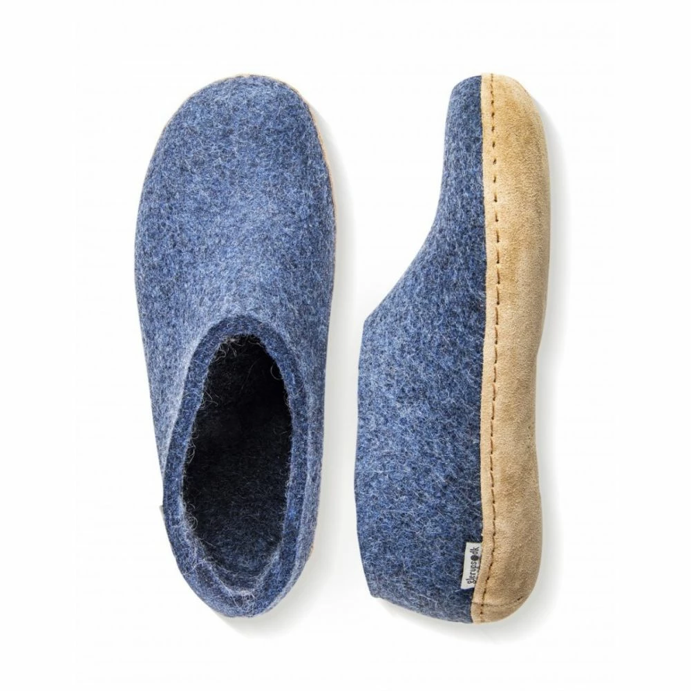 The Glerups Shoe Leather Sole in Denim is the perfect indoor footwear for barefoot comfort around the house or chalet, where cold floors are a fact of Canadian life. Get more warmth and the comfort of on-the-foot 100% pure wool shoe.
