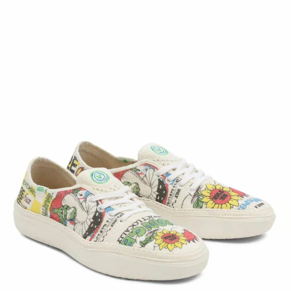Vans’ purpose is to enable creative expression by encouraging the “Off The Wall” spirit that comes from expressing your true self. As part of our commitment to inspire youth culture, we recognise that we have a responsibility to move towards circular products and systems that use regenerative and recycled materials, design out waste, and create systems that keep product in use and out of land fills. As an initial step in our journey towards sustainability, this product is made with at least 50% organic cotton.